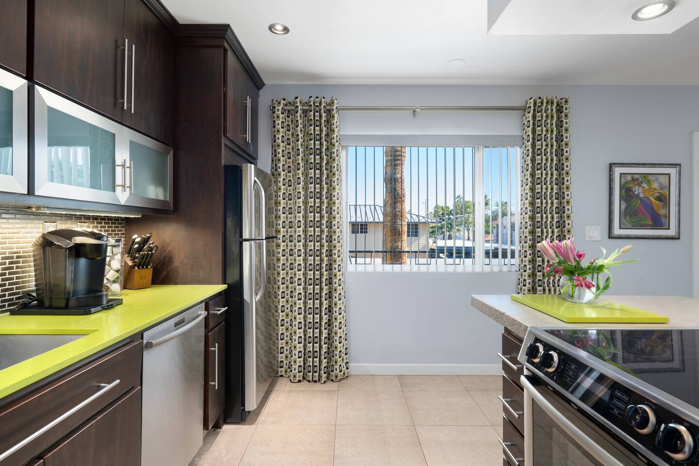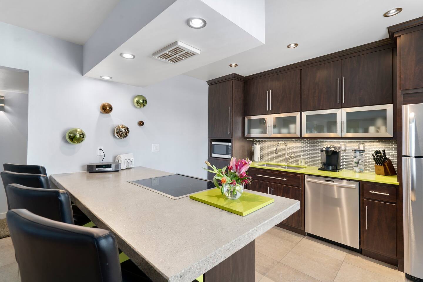 Enjoy a front row seat at Scottsdale Stadium for SPRING TRAINING!! This beautifully-styled modern condo is just a short walk to OLD TOWN SCOTTSDALE! Enjoy fine dining, exquisite shopping and gallery exploring - or hiking, biking, or walking any of the nearby trails and paths. Come home to cozy, modern comfort in the heart of Old Town Scottsdale to find your condo well-stocked and ready for you to relax and enjoy!