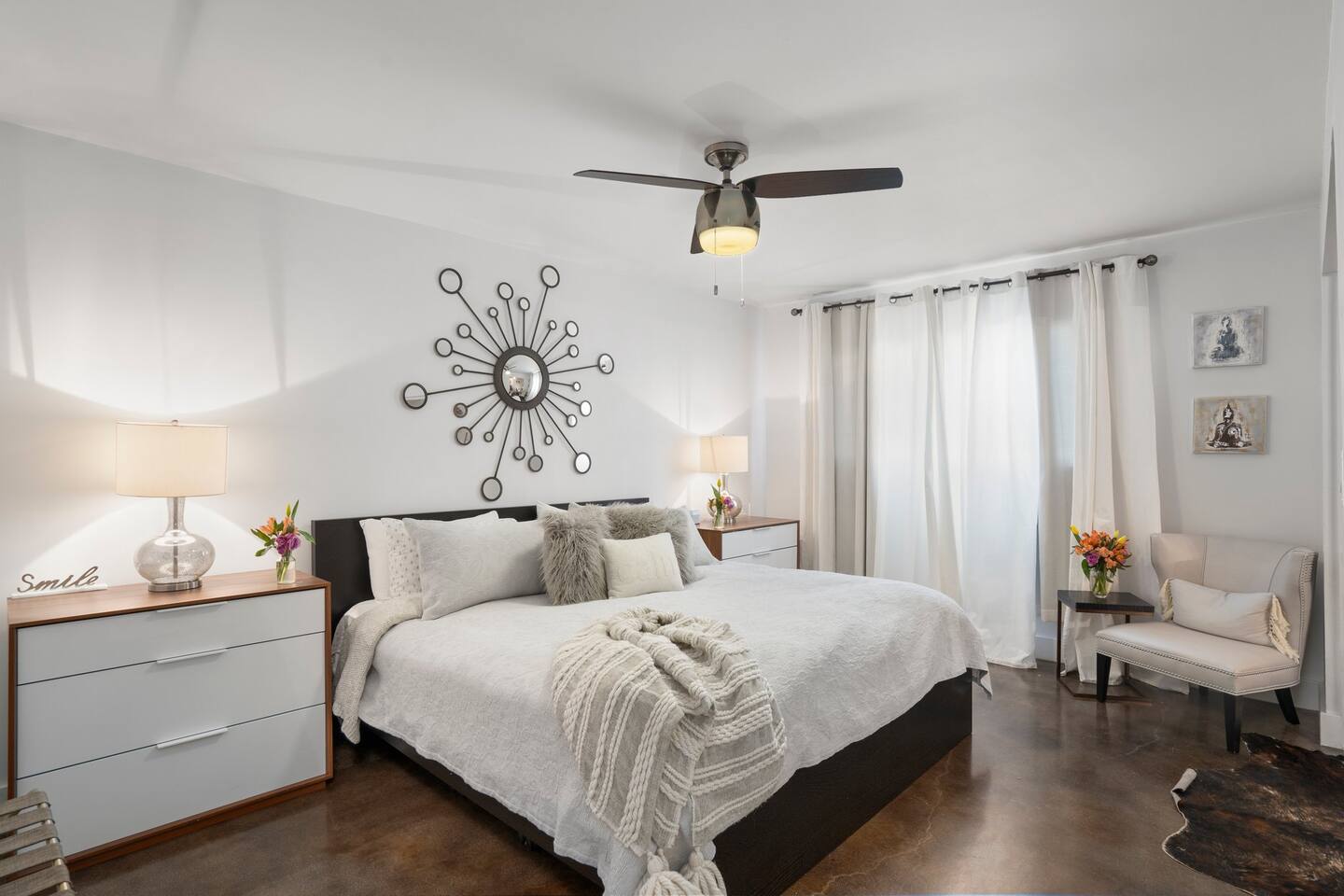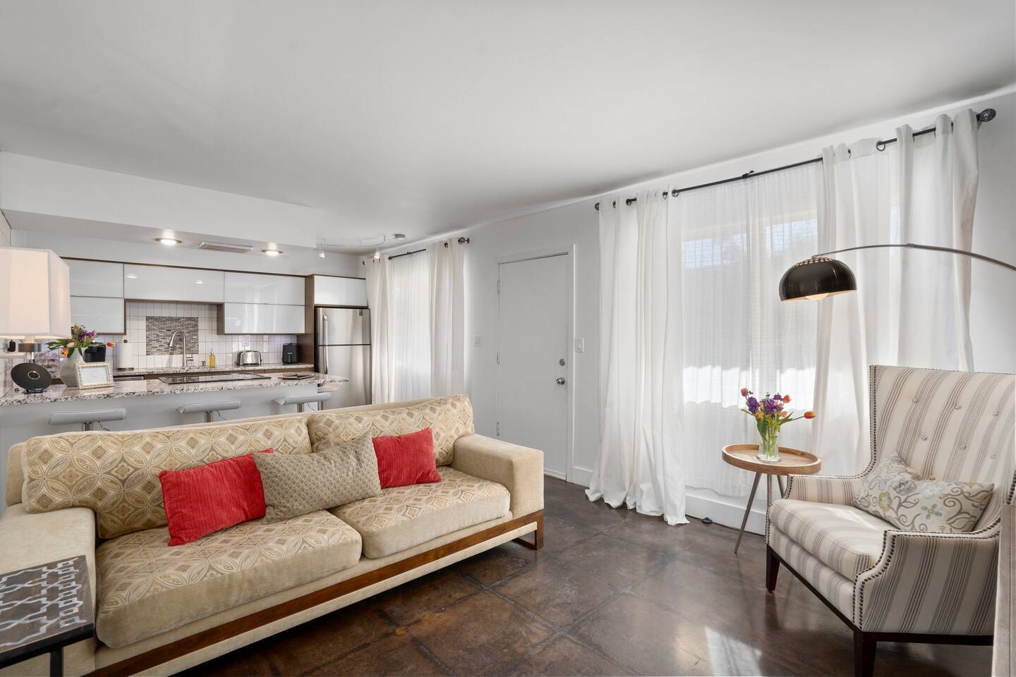 The BEST Old Town Scottsdale location!! 1 bdrm /1bth beautiful mid-century condo. BEST LOCATION!! Old Town Scottsdale - Luxury 1 bdrm/1 bth condo - Located less than a mile from Scottsdale Stadium, this home is easy walking distance to shopping, dining, and the life of old town! This updated mid-century modern condo has stained concrete floors, a fully stocked kitchen, bathroom, a super comfy bed and bedding, a small office with a WiFi printer, and all the amenities from a well-stocked home.