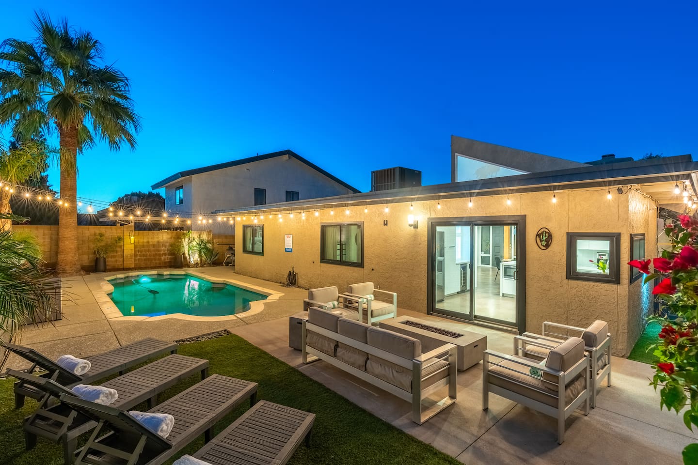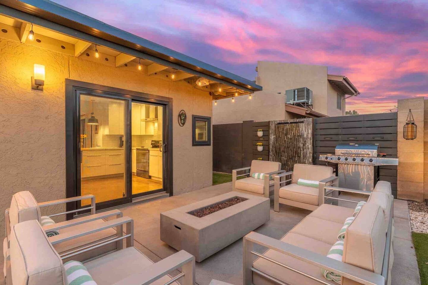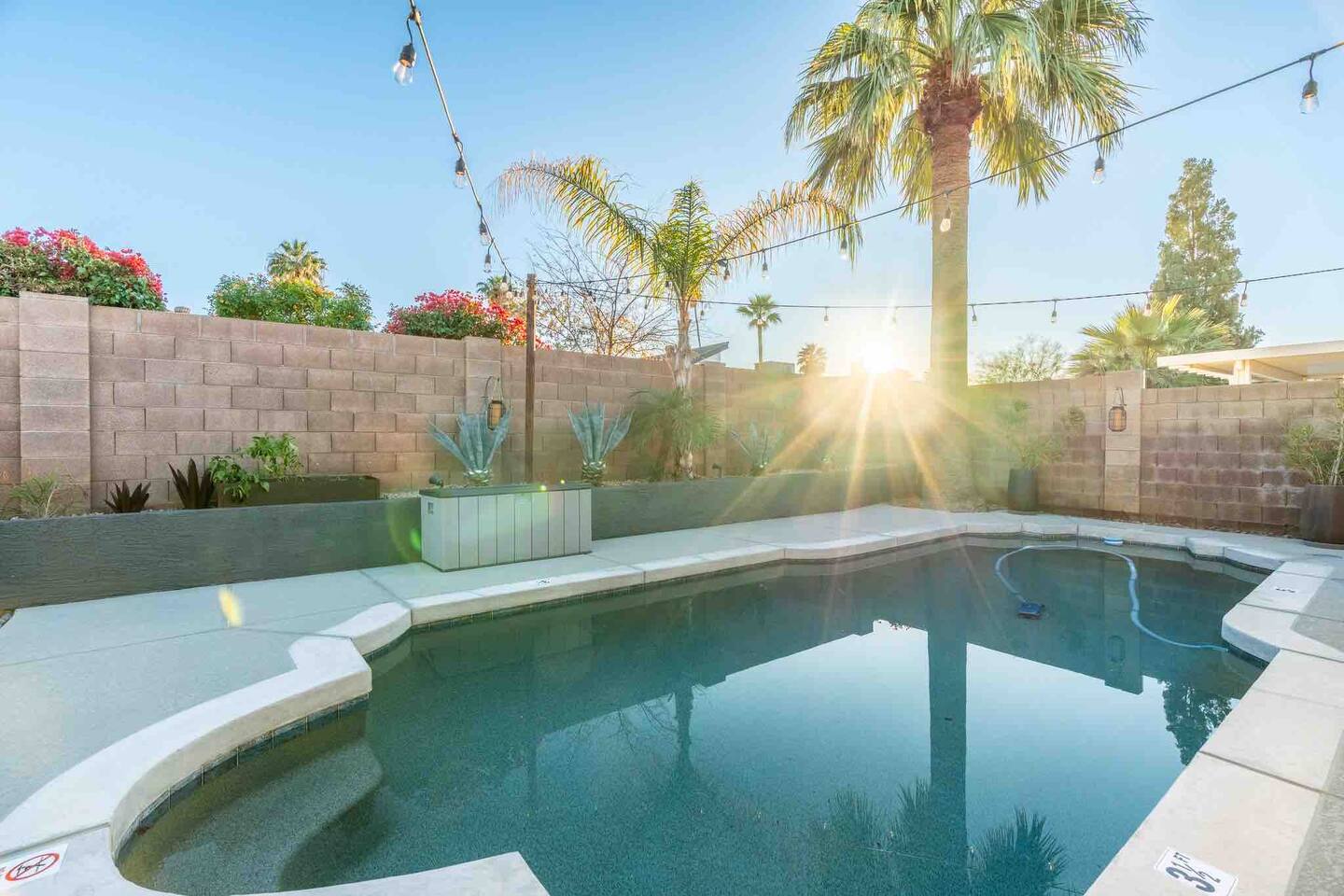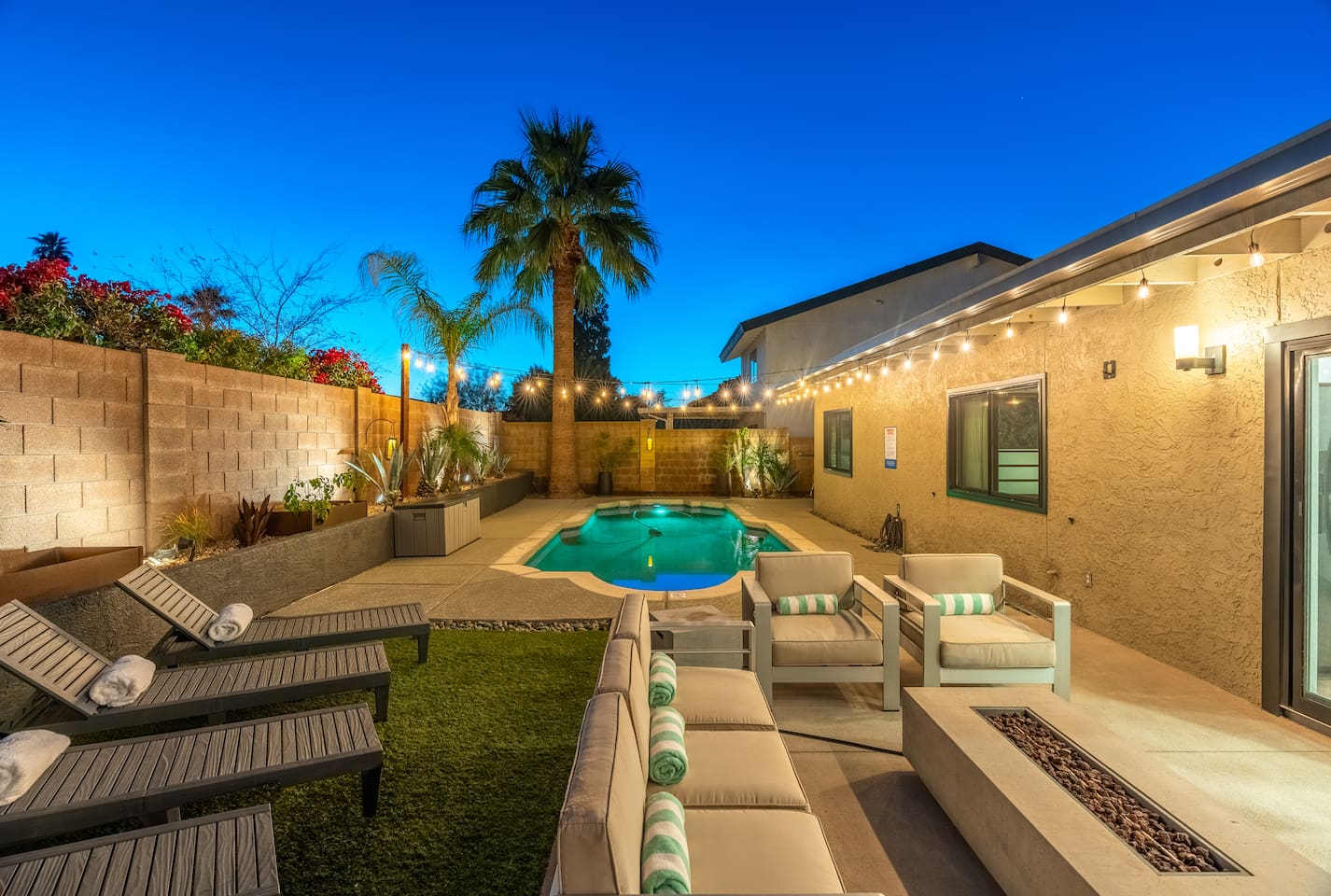 Relax and enjoy this modern, well-designed house in the Arcadia area of Phoenix. Close to everything (5 min to Old Town Scottsdale, 10 min to Mill Ave. in Tempe, 15 min to downtown PHX). This beautiful home feature 3 bedrooms, 2 bathrooms, indoor fireplace, 3 patios, 2 fire features, a mesmerizing fountain, a great backyard, and a pool! Papago Retreat awaits you!