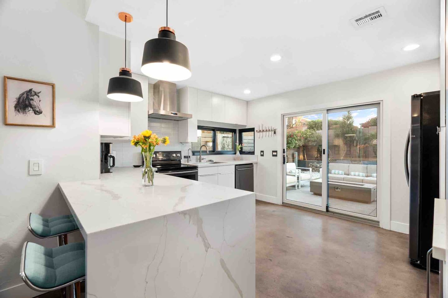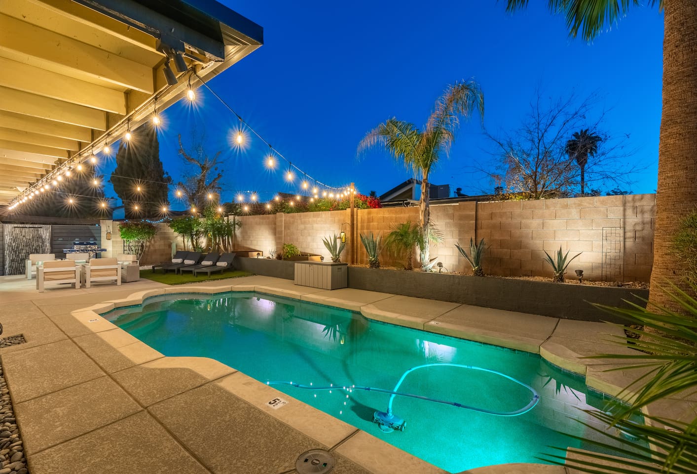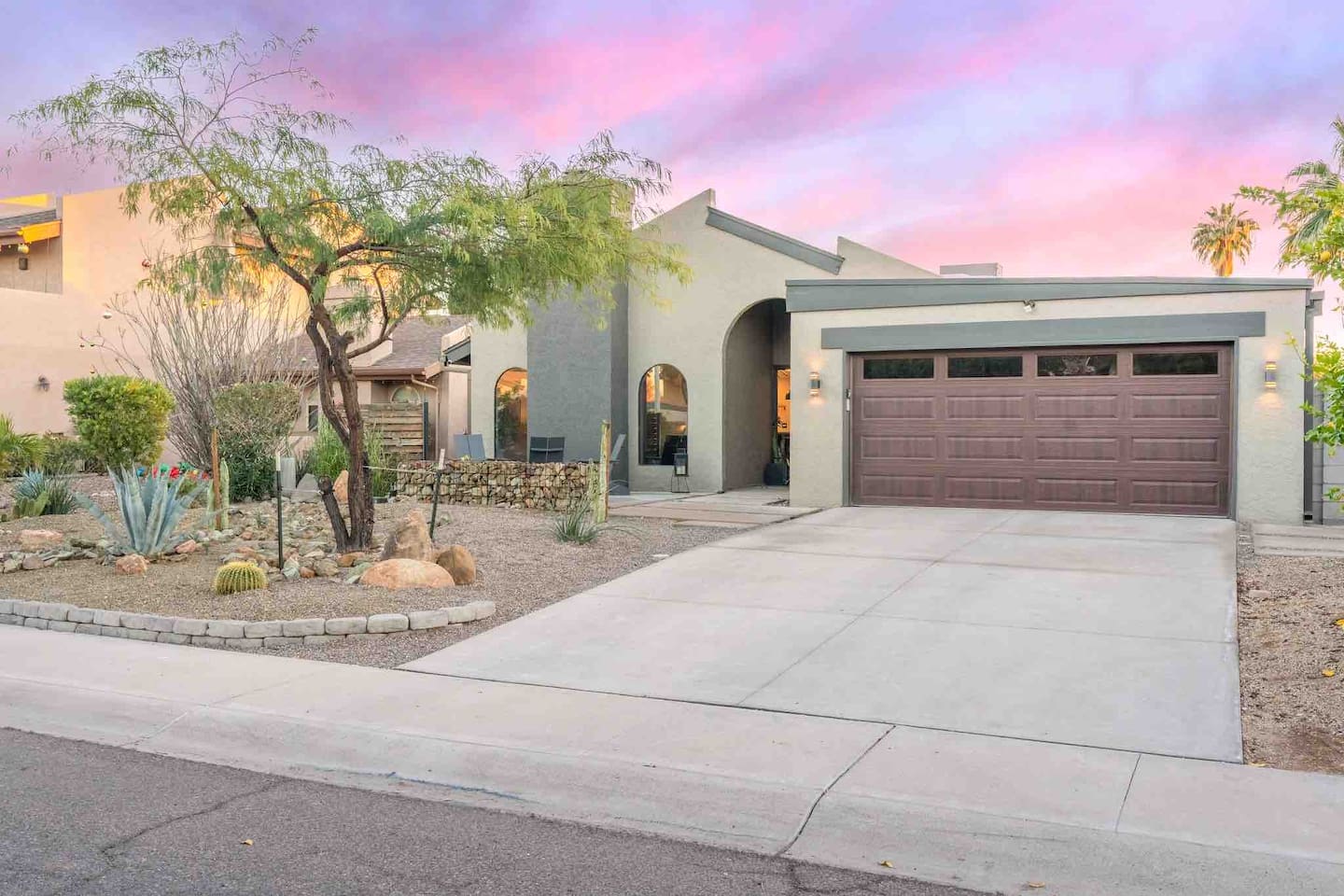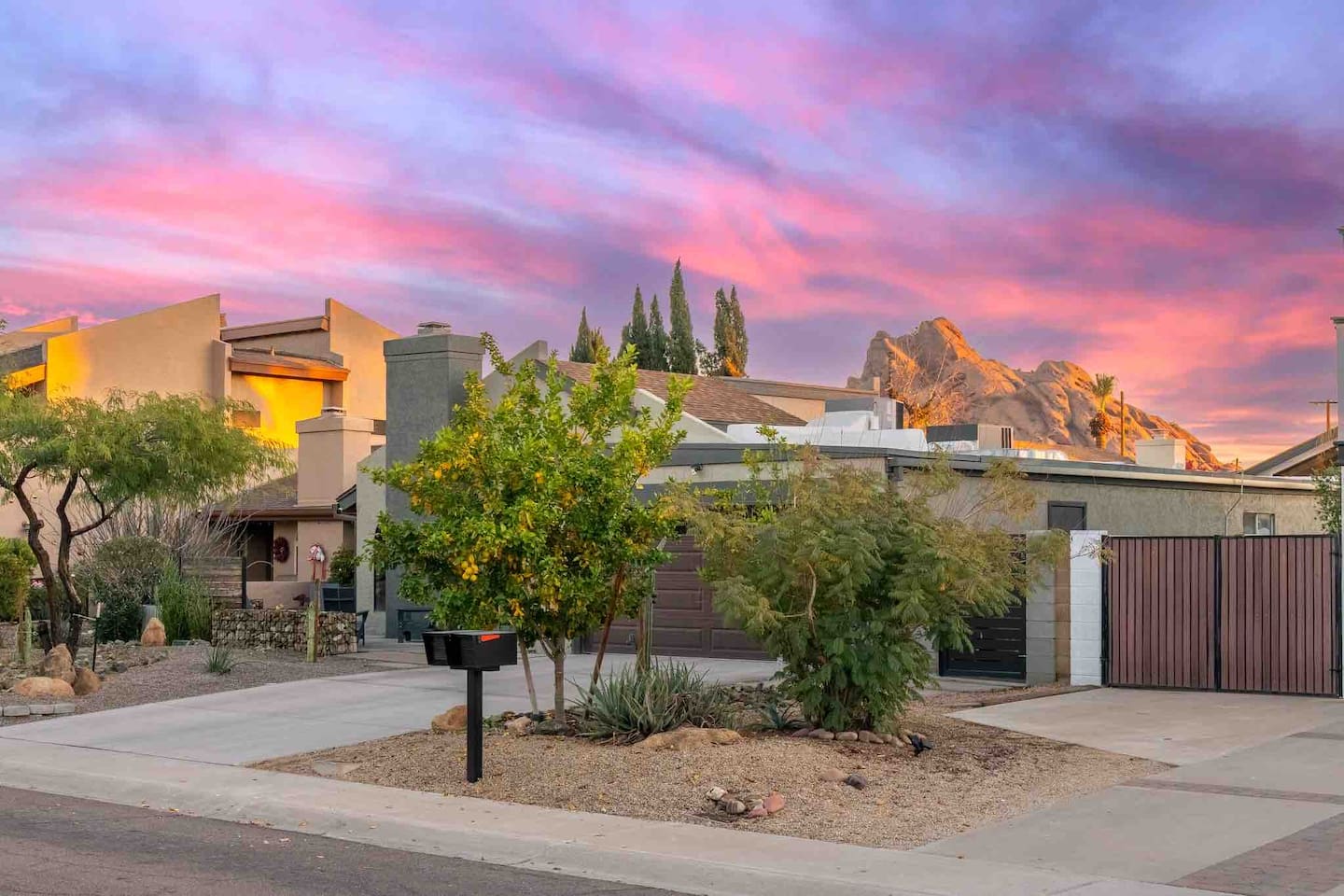 Relax and enjoy this modern, well-designed house in the Arcadia area of Phoenix. Close to everything (5 min to Old Town Scottsdale, 10 min to Mill Ave. in Tempe, 15 min to downtown PHX). This beautiful home feature 3 bedrooms, 2 bathrooms, indoor fireplace, 3 patios, 2 fire features, a mesmerizing fountain, a great backyard, and a pool! Papago Retreat awaits you!